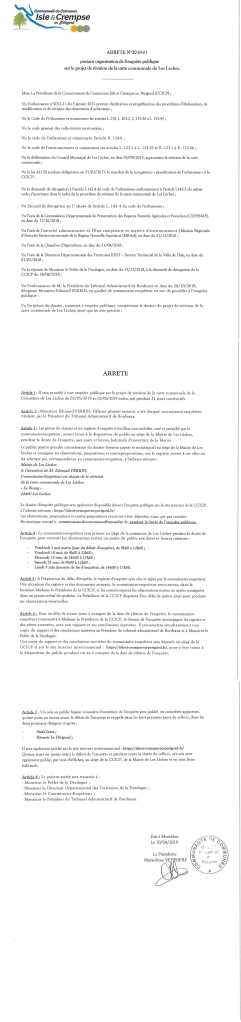 III) ARRÊTÉ FIXANT LES MODALITÉS D’OUVERTURE DE L’ENQUÊTE PUBLIQUE – RÉVISION DE LA CARTE COMMUNALE DE LES LÈCHES