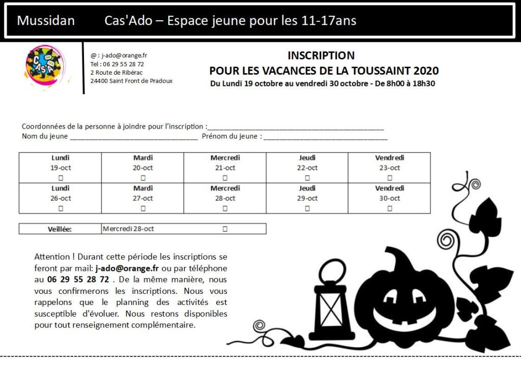 Vous trouverez donc ci joint le planning ainsi que la fiche d’inscription pour ces vacances. Pour une inscription ou pour toutes questions et/ou informations supplémentaires nous restons à disposition par téléphone au 06 29 55 28 72 ou par e-mail : j-ado@orange.fr