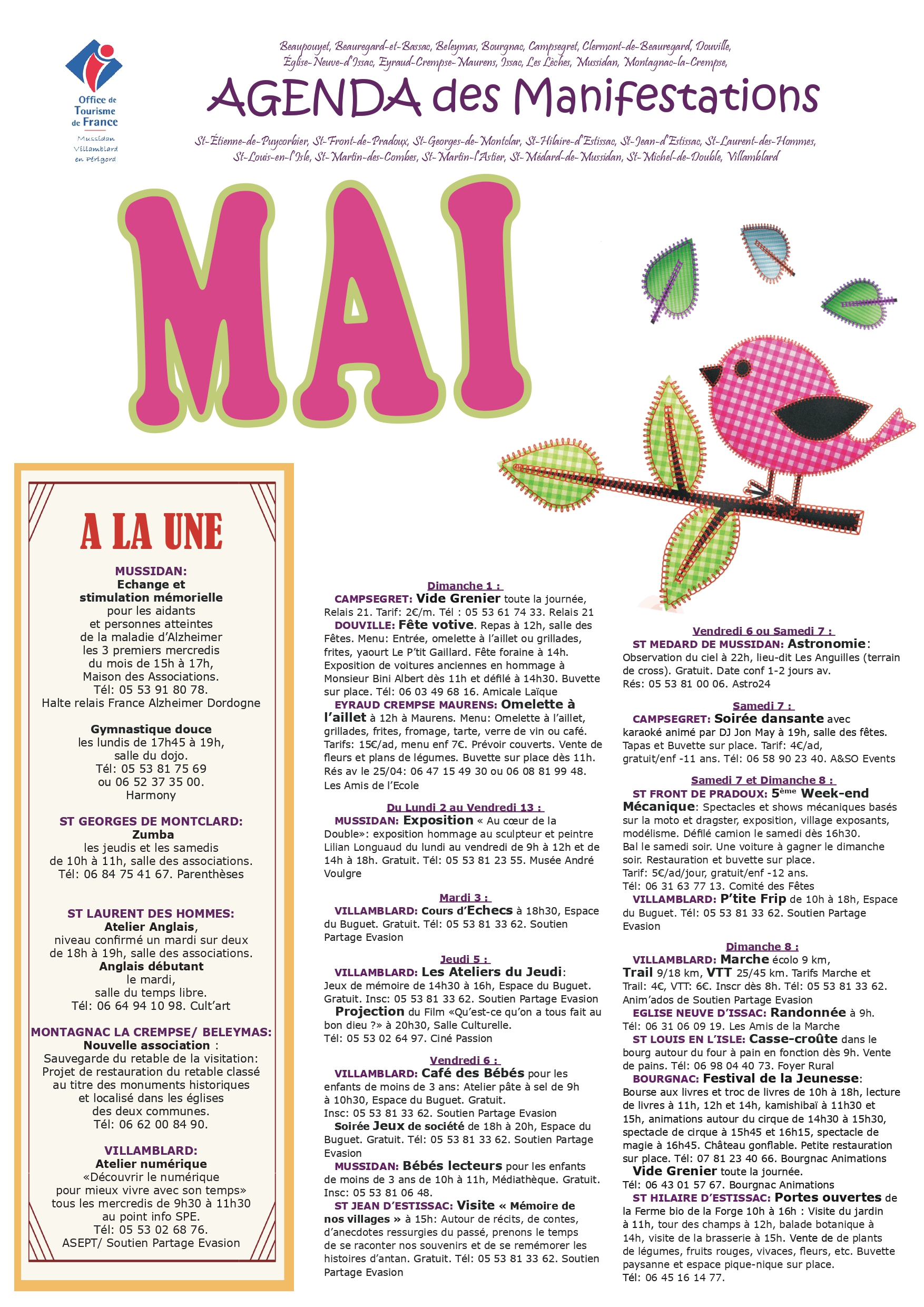 En Mai, fais ce qu’il te plaît ! Voici l’agenda des manifestations sur le territoire communautaire Publié le 25 avril 2022 par lydie19 Partager : Cliquer pour partager sur X(ouvre dans une nouvelle fenêtre) X Cliquez pour partager sur Facebook(ouvre dans une nouvelle fenêtre) Facebook J’aime chargement… Similaire