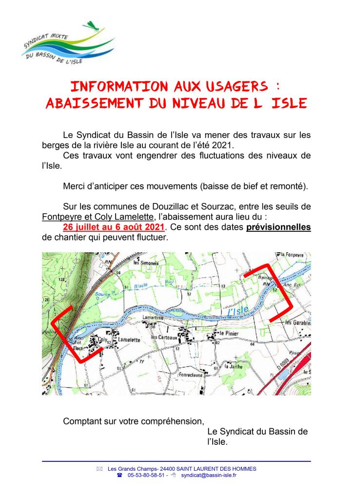 Le Syndicat Mixte du Bassin de l’Isle vous informe :